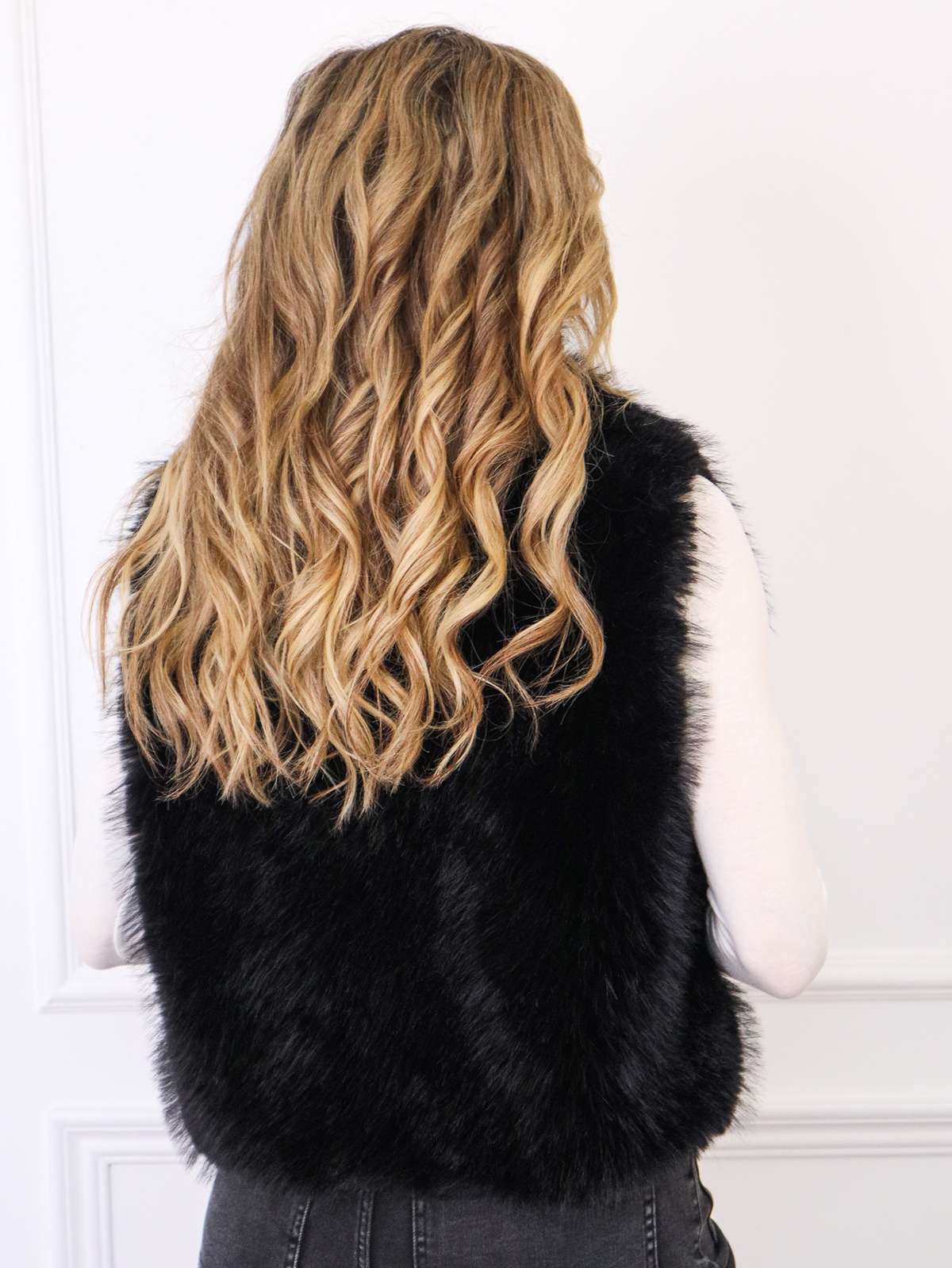 KAMIZELKA FUTRZANA ZAPINANA NA HAFTKI- CZARNA