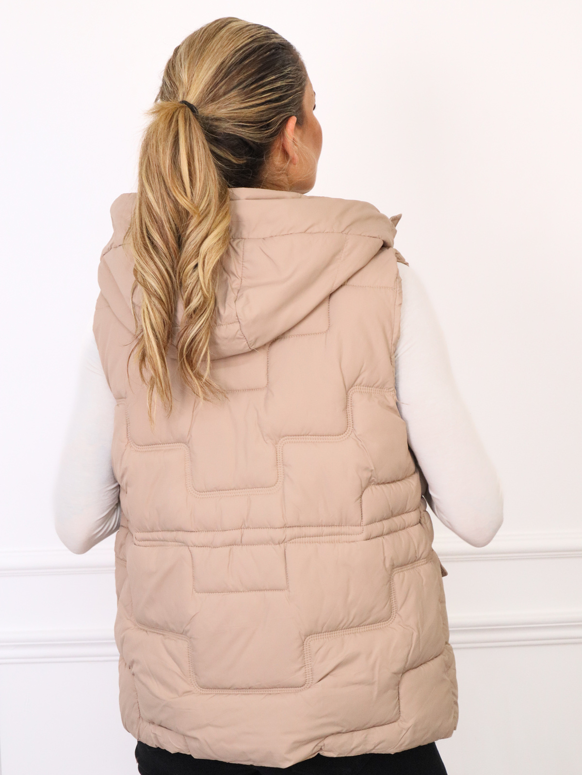 KAMIZELKA PIKOWANA ZE ŚCIĄGACZEM W PASIE- BEŻOWA