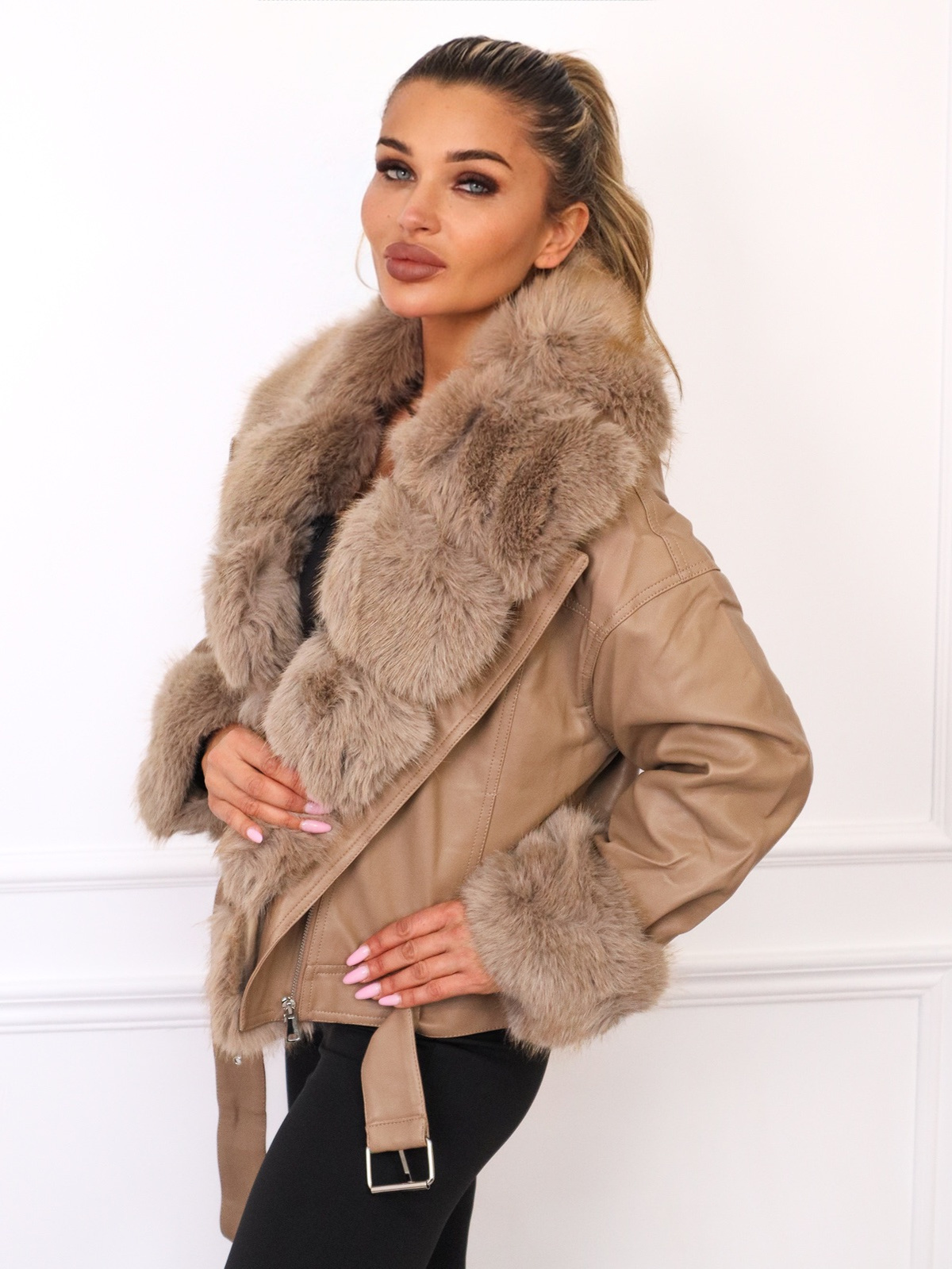 KURTKA RAMONESKA Z IMITACJI SKÓRY Z FUTERKIEM- FANGO
