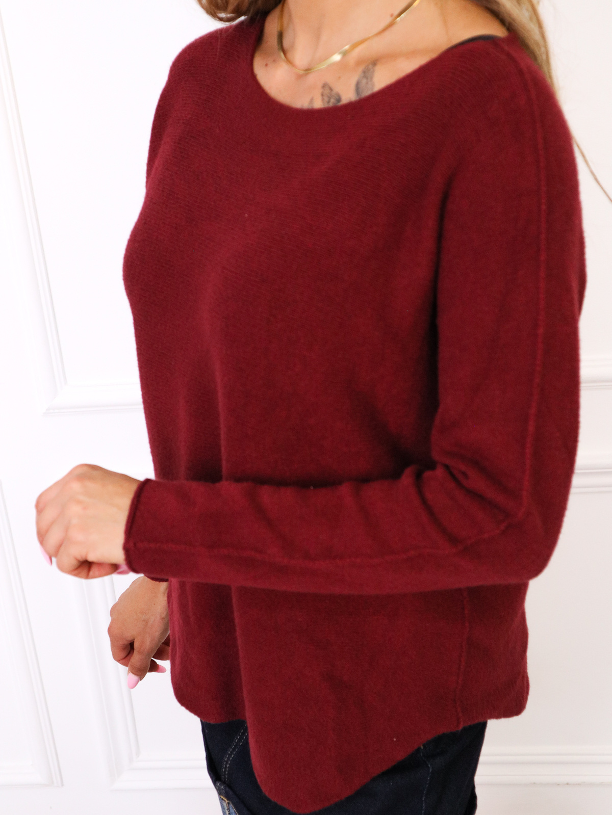 SWETER Z OKRĄGŁYM DEKOLTEM- BORDOWY