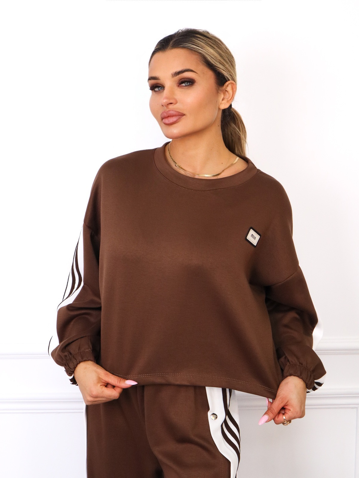 KOMPLET MASEŁKO BLUZA Z NASZYWKĄ+ SPODNIE ZAPINANE PO BOKACH- BRĄZOWY