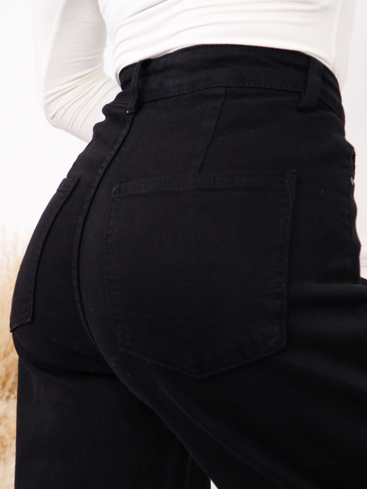 SPODNIE JEANSOWE BAGGY Z NAGAWKĄ ZAPINANĄ NA ZATRZASK-CZARNE