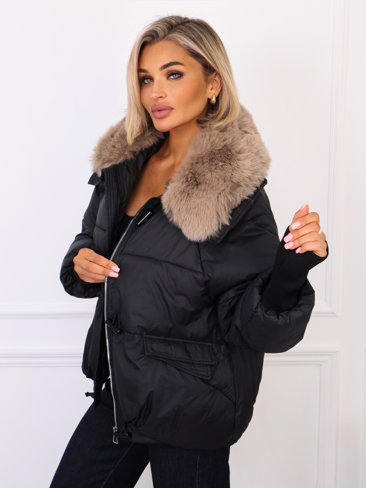 KURTKA ZIMOWA Z ODPINANYM FUTERKIEM- CZARNA