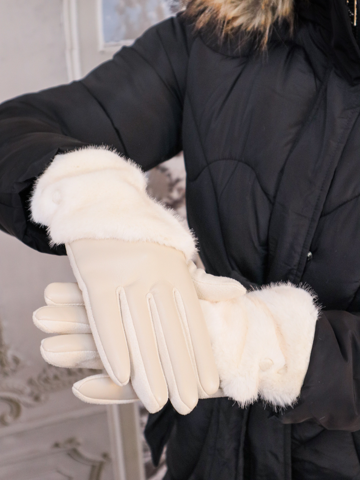 RĘKAWICZKI OCIEPLANE Z EKOSKÓRY I ZAMSZU Z FUTERKIEM- BEŻOWE