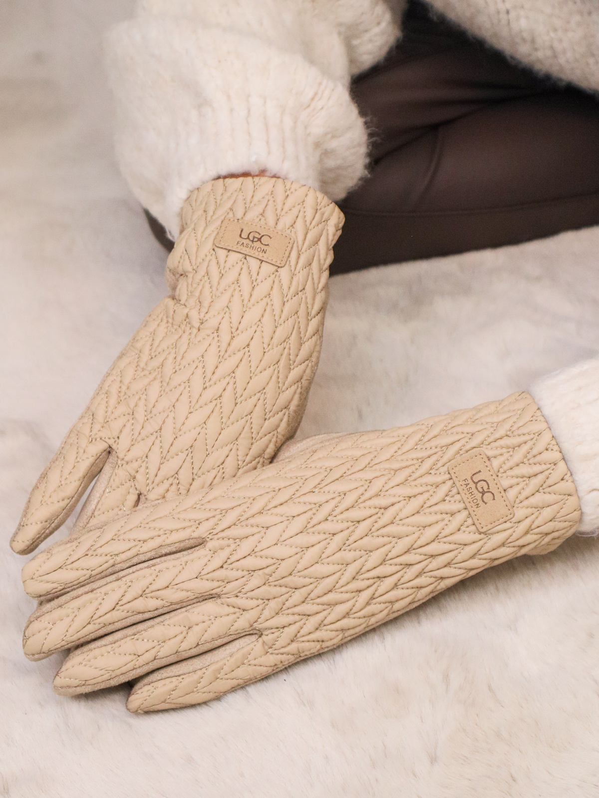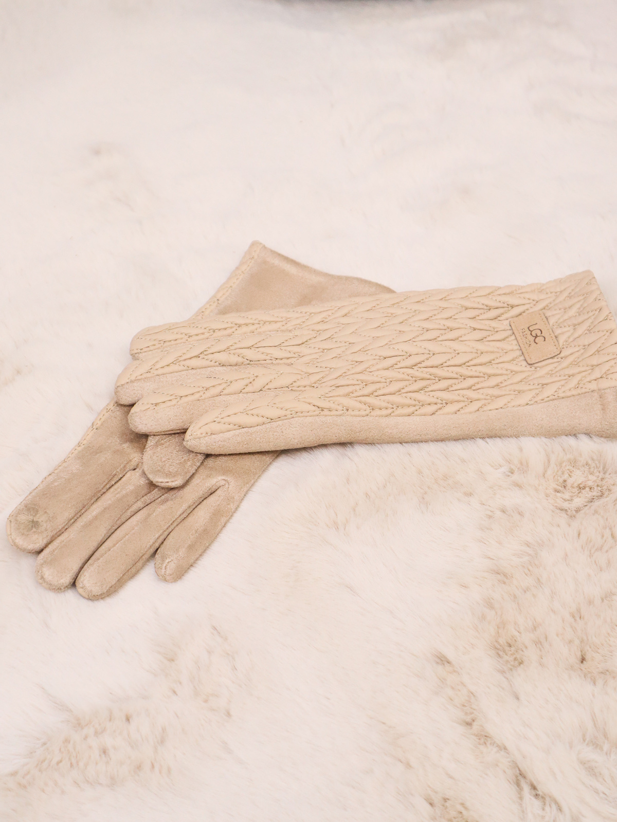 RĘKAWICZKI ZAMSZOWE Z PIKOWANIEM- BEŻOWY