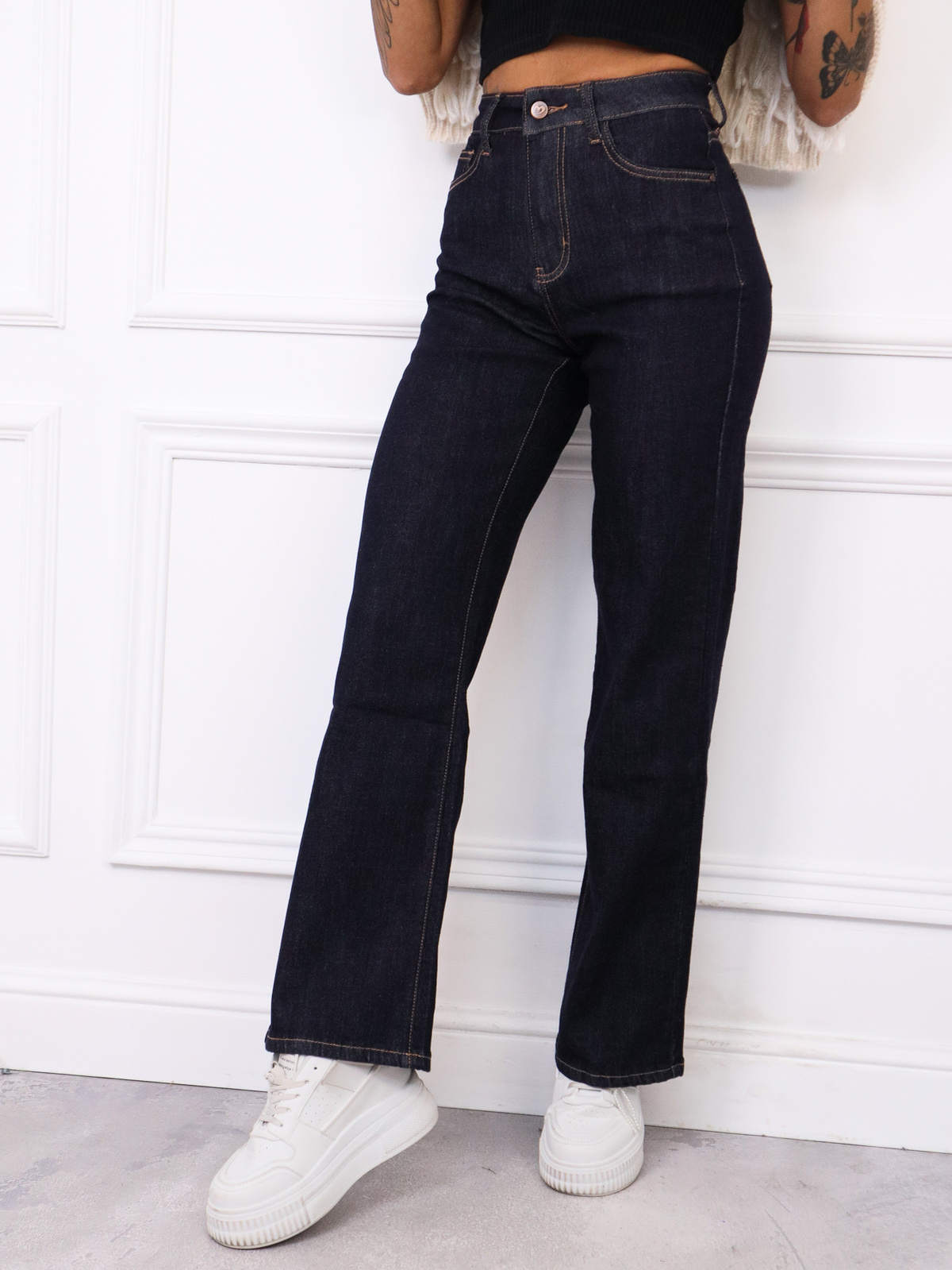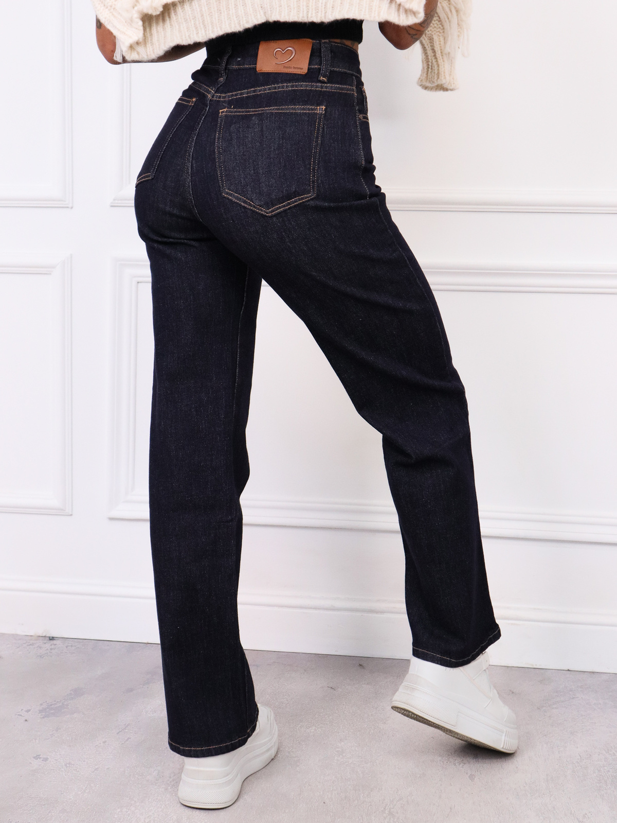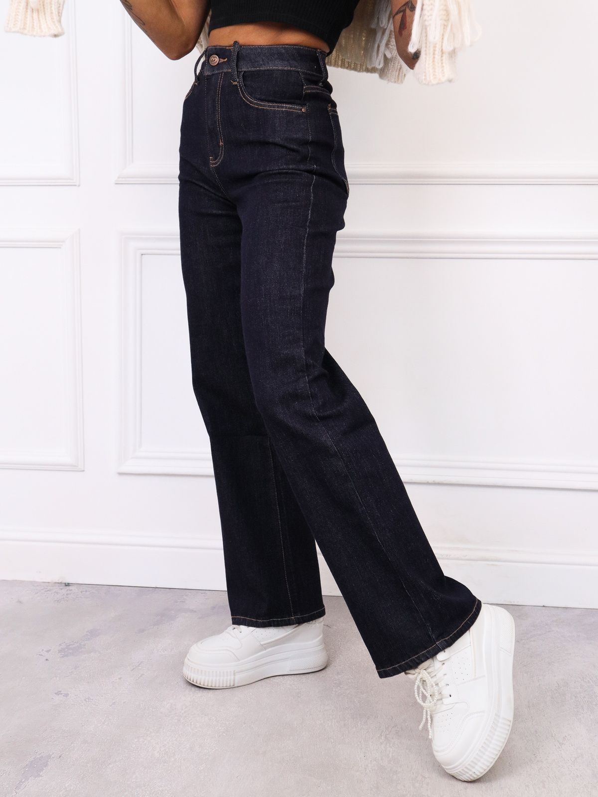 SPODNIE JEANSOWE WIDE Z WYSOKIM STANEM-GRANATOWE