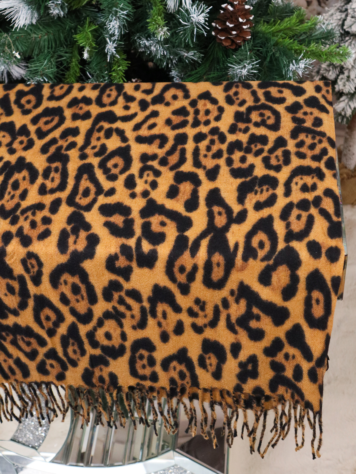 CHUSTA DZIANINOWA W PANTERKĘ- BRĄZOWA
