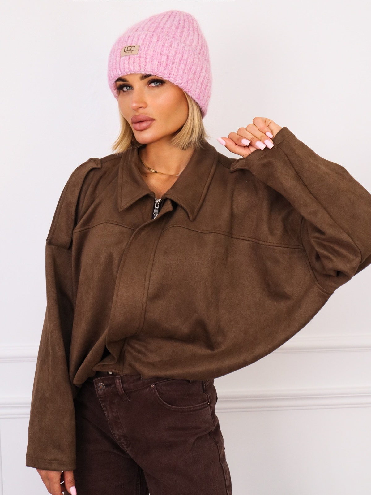 CZAPKA ZIMOWA Z OZDOBNĄ NASZYWKĄ I MANKIETEM- RÓŻOWA