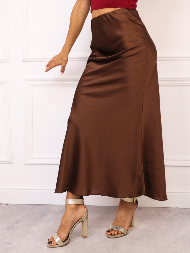 SATYNOWA SPÓDNICA Z GUMKĄ W PASIE - CZEKOLADOWA
