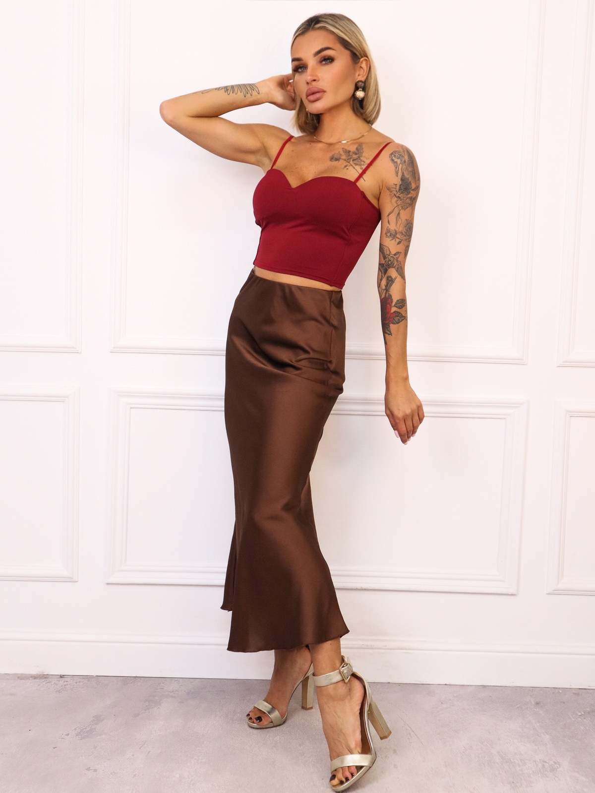 Spódnica o długości maxi, wykonana z satynowej tkaniny. W pasie wszyta gumka. Spódnica jest niezwykle zwiewna i prezentuje się znakomicie w każdej stylizacji