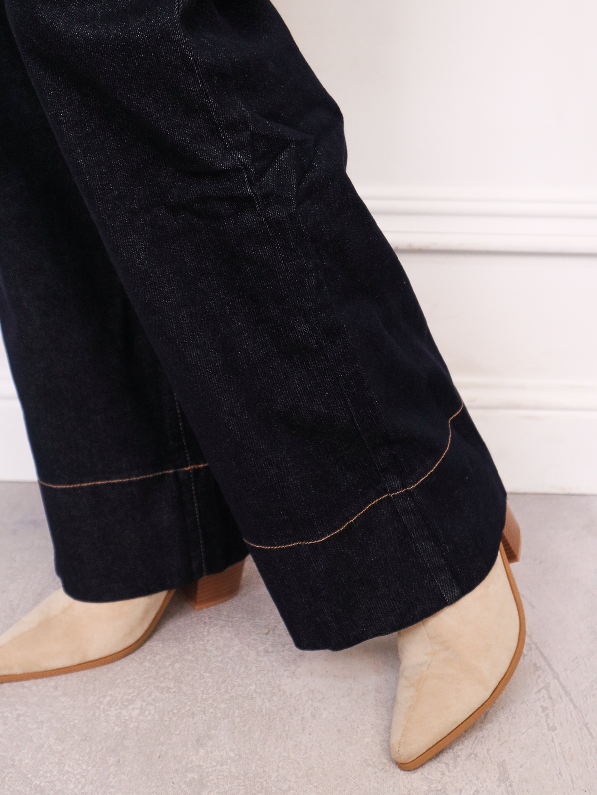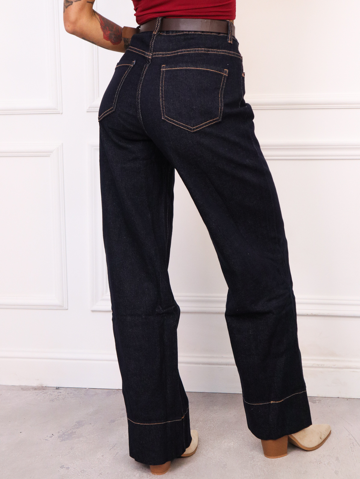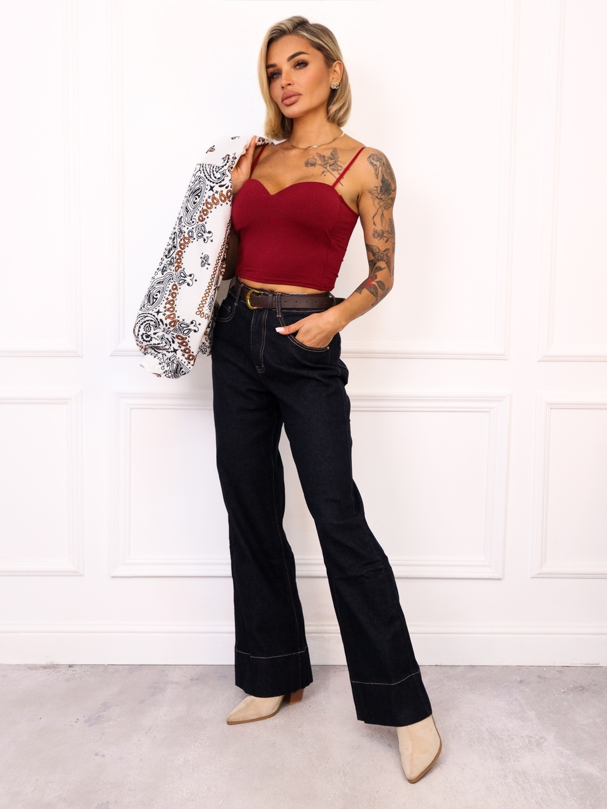 SPODNIE JENASOWE Z PROSTYMI NOGAWKAMI I WYSOKIM STANEM- CIEMNY GRANAT