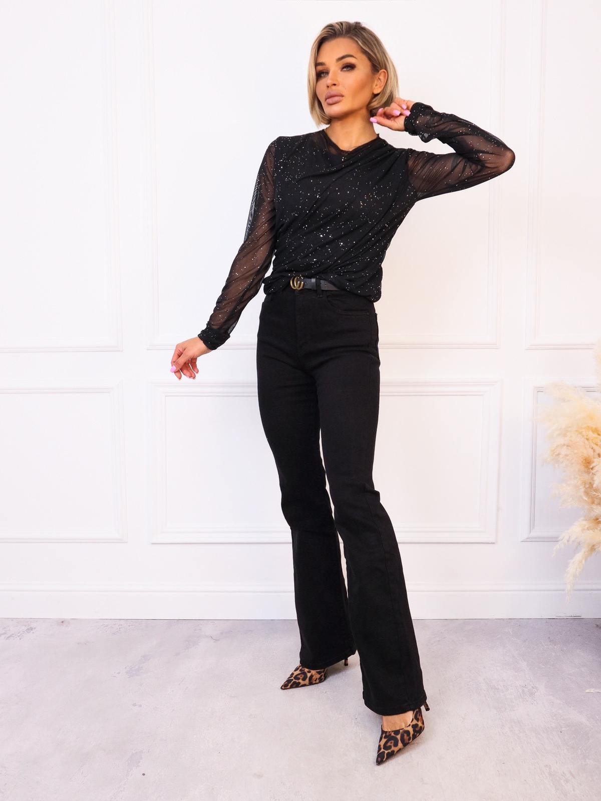 BLUZKA Z SIATECZKOWEGO MATERIAŁU I BŁYSZCZĄCYMI DROBINKAMI- CZARNA