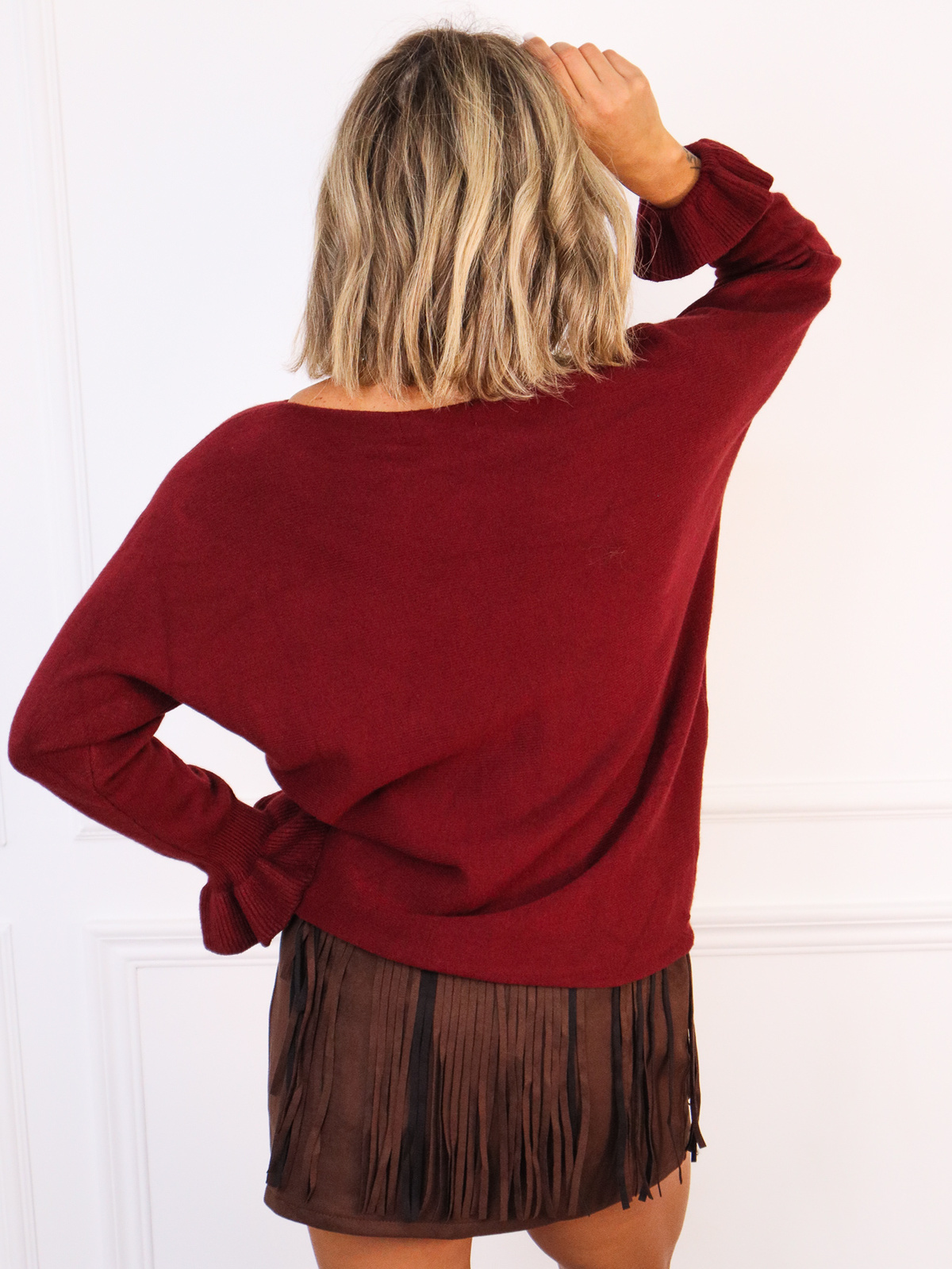SWETER Z FALBANKAMI PRZY RĘKAWACH- BORDOWY