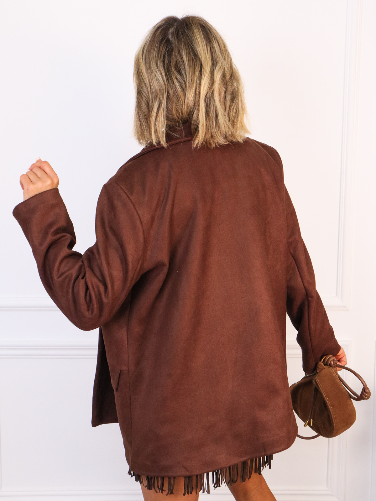 ZAMSZOWA MARYNARKA OVERSIZE ZAPINANA NA GUZIK- CZEKOLADOWA