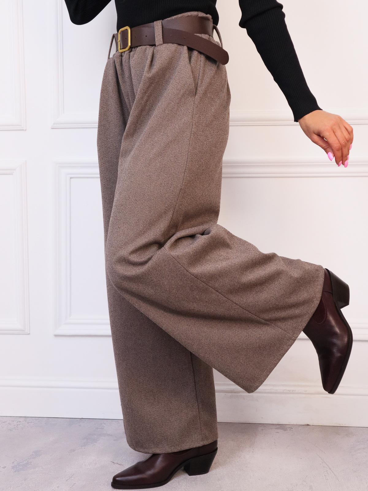 SPODNIE DZIANINOWE SZEROKIE Z PASKIEM- FANGO