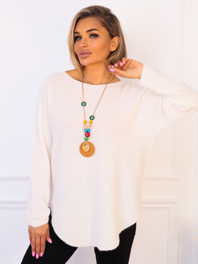 SWETER JEDNOLITY DZIANINOWY Z NASZYJNIKIEM- BIAŁY