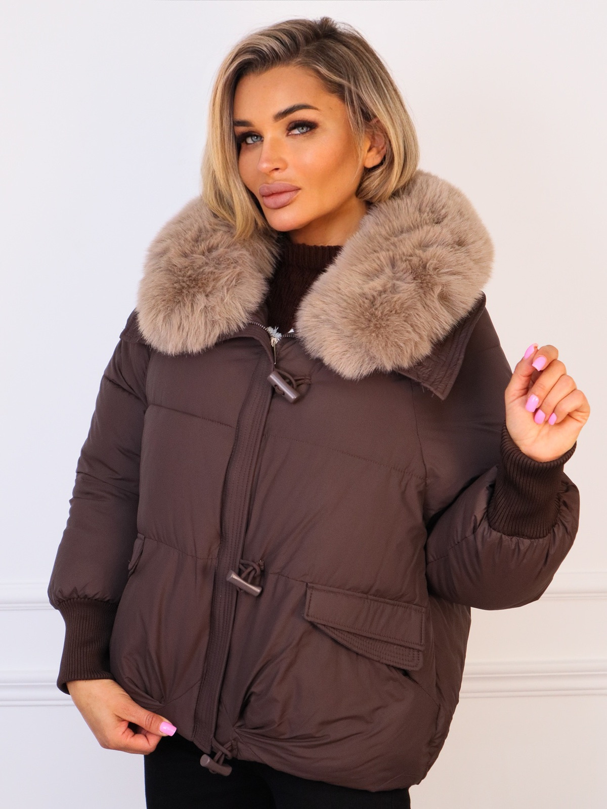 KURTKA OVERSIZE Z FUTERKIEM- CZEKOLADOWA