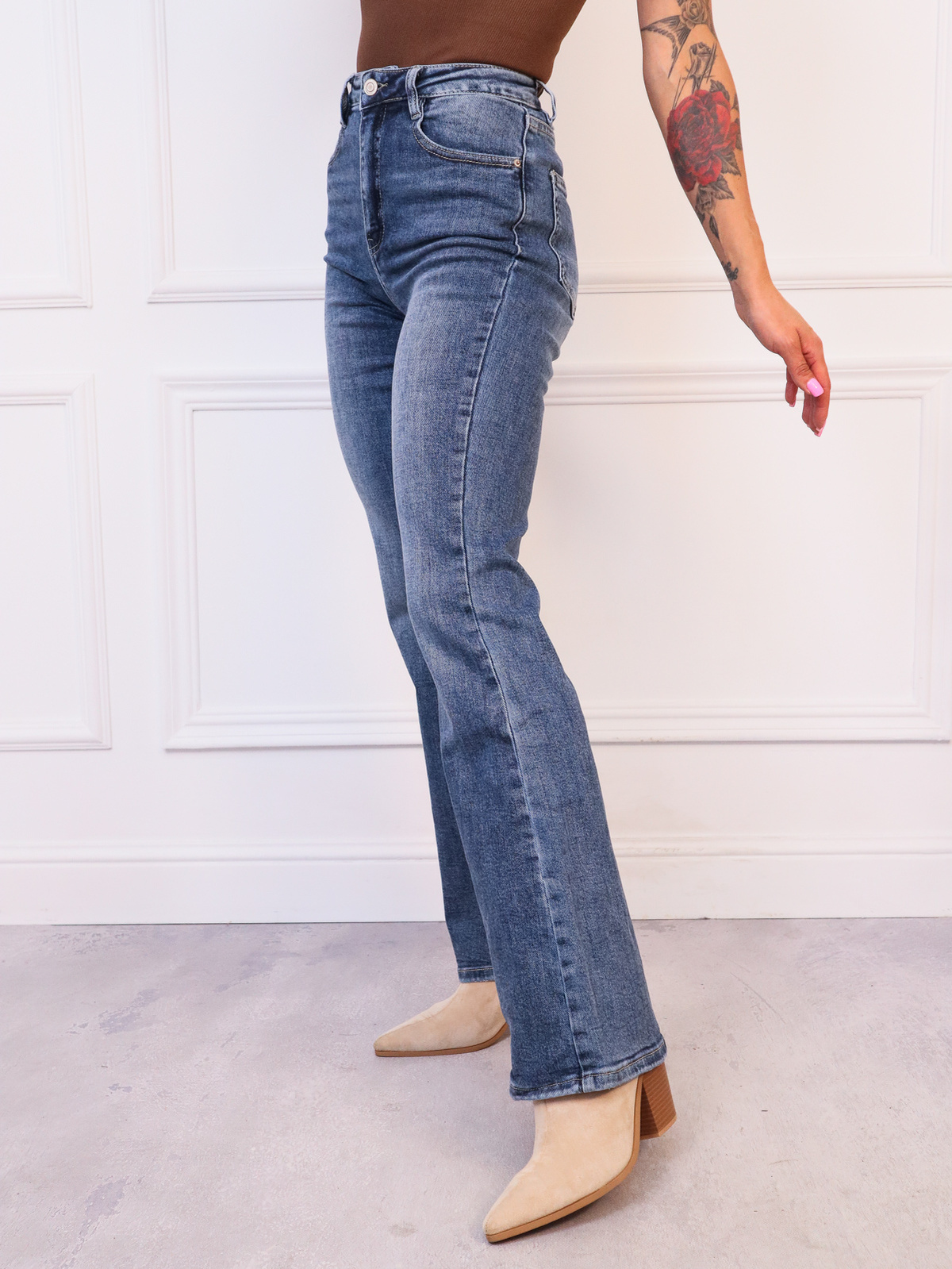 SPODNIE JEANSOWE DZWONY FLARE Z WYSOKIM STANEM