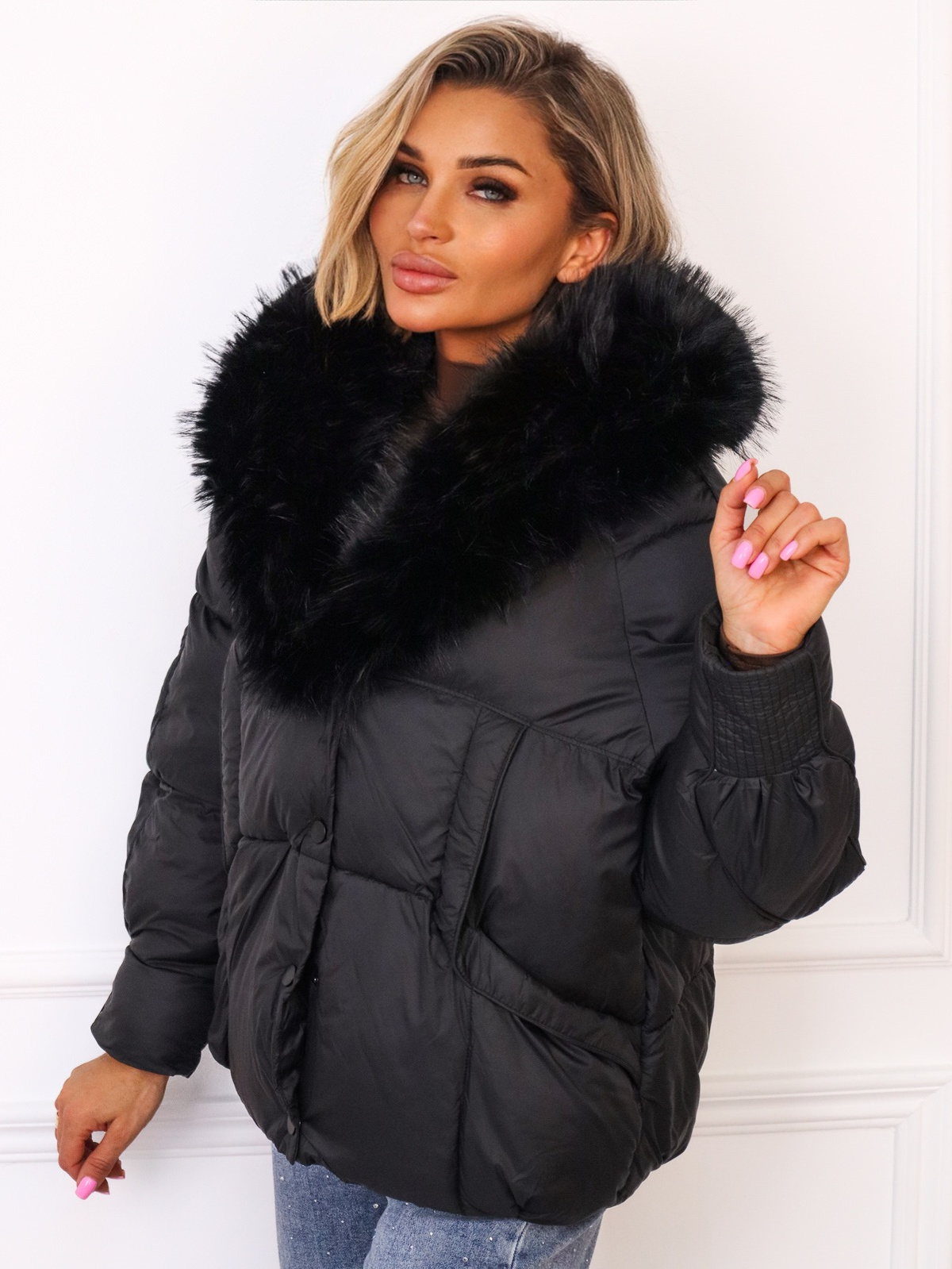 KURTKA Z FUTERKIEM ZAPINANA NA ZAMEK I ZATRZASKI- CZARNA