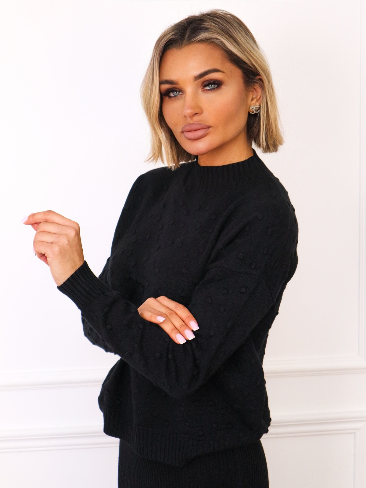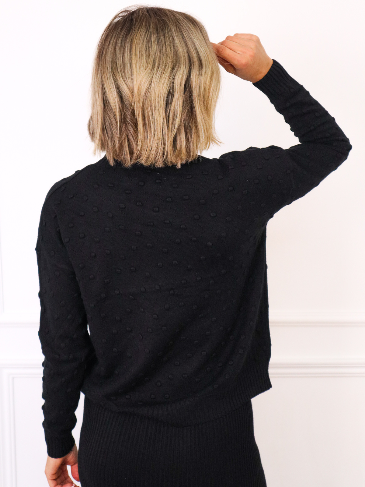 SWETER Z WYTŁACZANYMI KROPKAMI- CZARNY