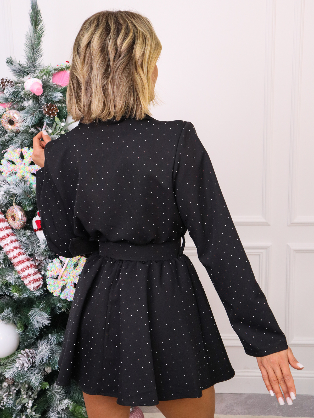 Kombinezon z klasycznym kołnierzykiem i długim rękawem.. Dopasowany w talii, pasek podkreśla kobiece kształty . Zapinany na guziki. Idealny zarówno na spotkania ze znajomymi, jak i na bardziej formalne okazję.