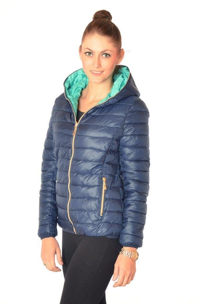 KURTKA PIKOWANA DWUSTRONNA JASNO GRANATOWA - ZIELONA
