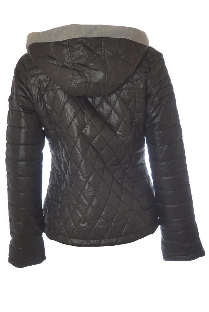ZAPINANA NA ZAMEK, KAPTUR ZE ŚCIĄGACZEM, SZARE MATERIAŁOWE WSTAWKI
