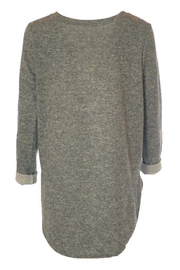 Szara asymetryczna bluzka z wisiorkiem motylkiem.