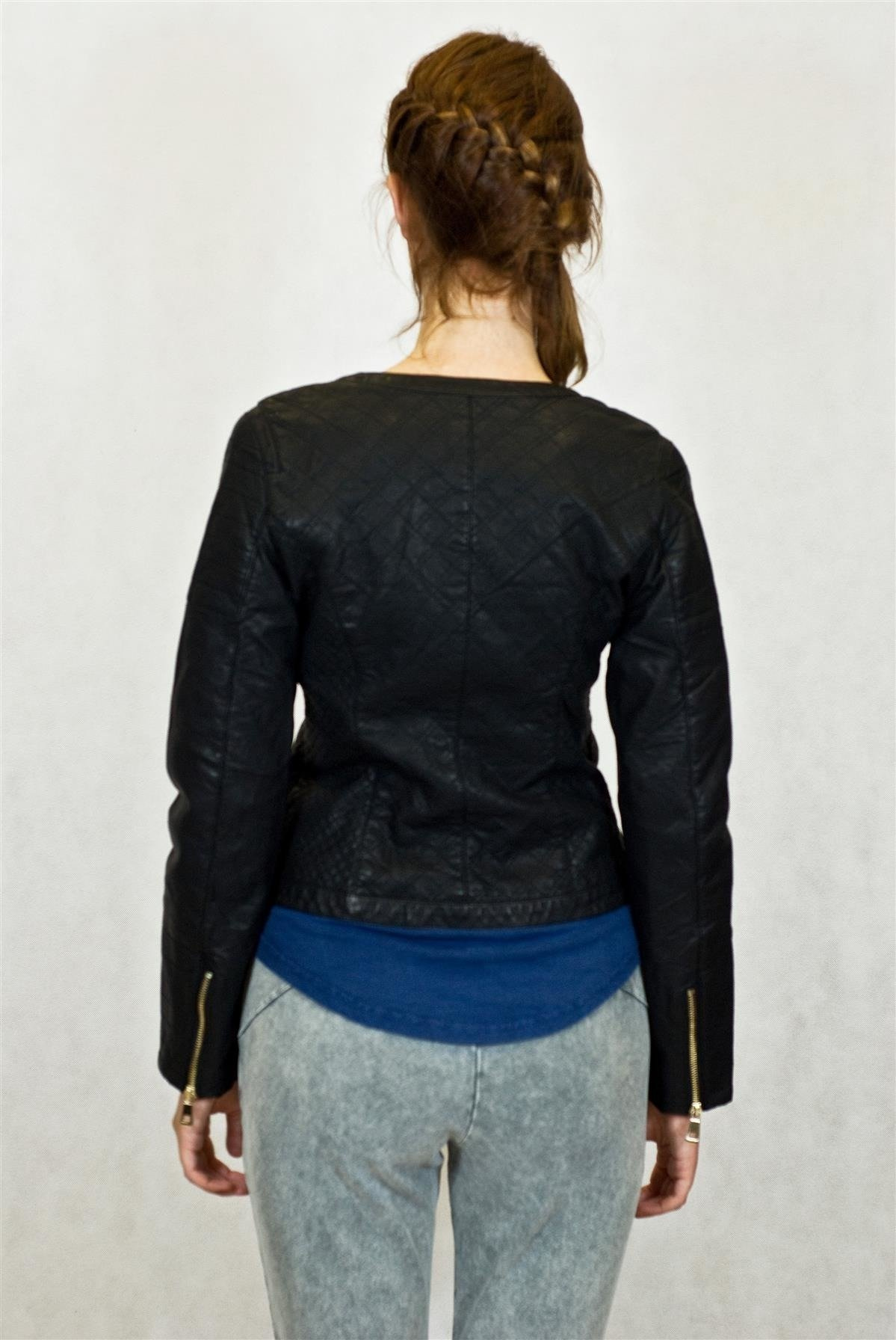 Pikowana kurtka ze skóry ekologicznej, zapinana na zamek. Zdobiona zamkami błyskawicznymi przy rękawach i kieszeniach.