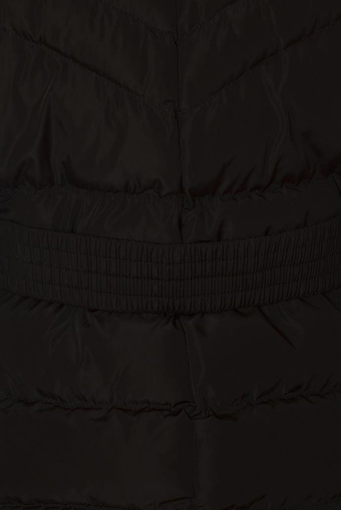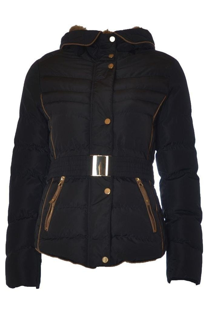 Krótka taliowana kurtka, zapinana na suwak, oraz pasek. Kurtka posiada kaptur z ciepłym i miłym w dotyku futerkiem, przy rękawach suwaki.