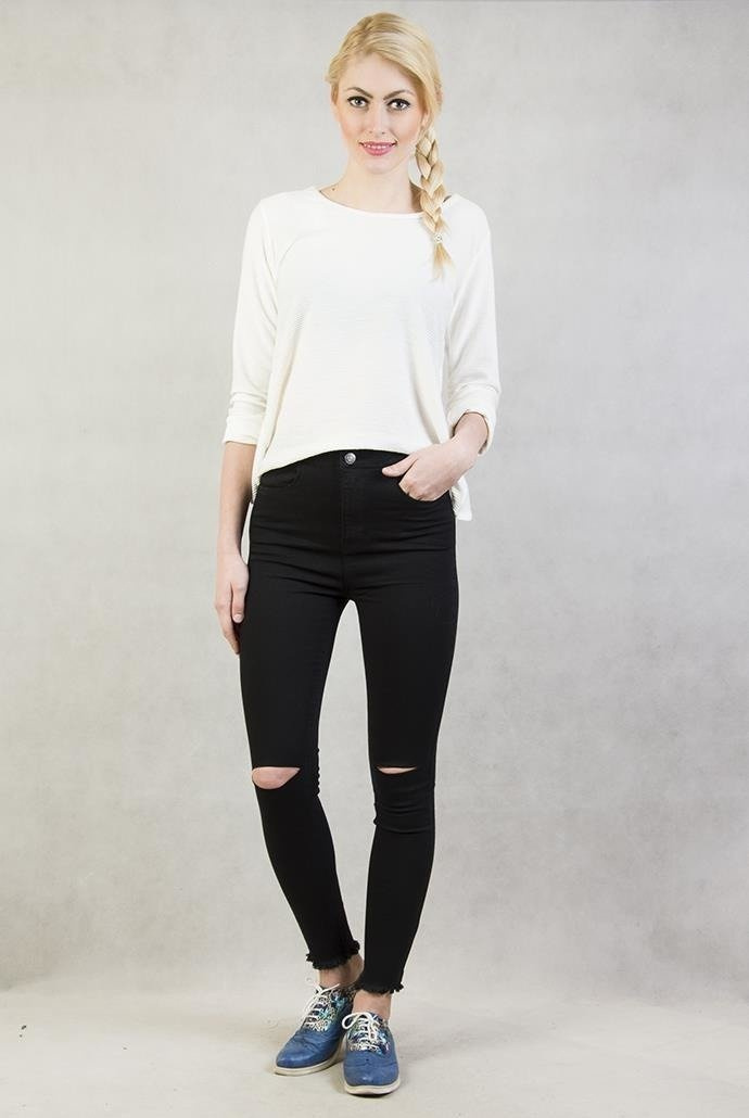 Czarne spodnie z wysokim stanem z dziurami na kolanach