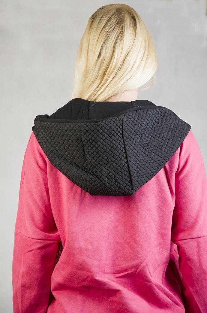Różowa, długa bluza z pikowanym kapturem, zapinana na zamek