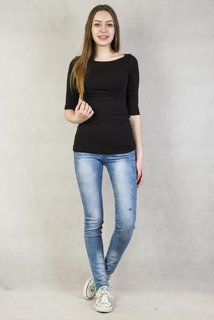 Czarna bluzka z rękawem 3/4 i dekoltem w "łódkę"