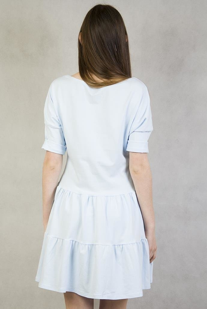 Niebieska Tunika z rękawem 3/4 i falbankami na dole