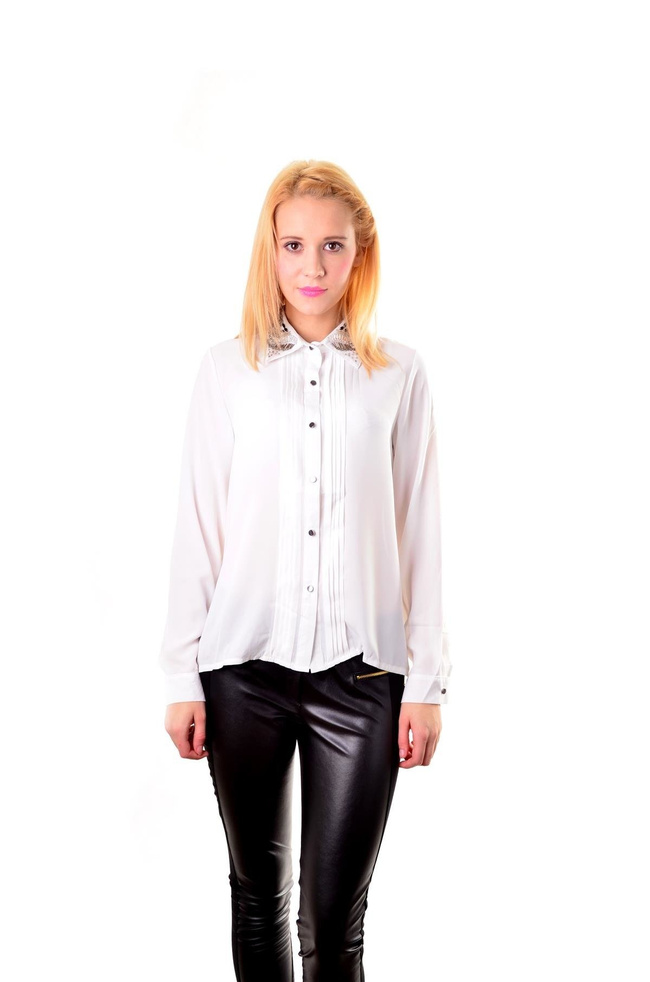 Luźna, elegancka koszula z bogato zdobionym kołnierzykiem, zapinana na ozdobne guziki, idealnie sprawdzi się w wielu stylizacjach, na co dzień, jak i na wieczór .