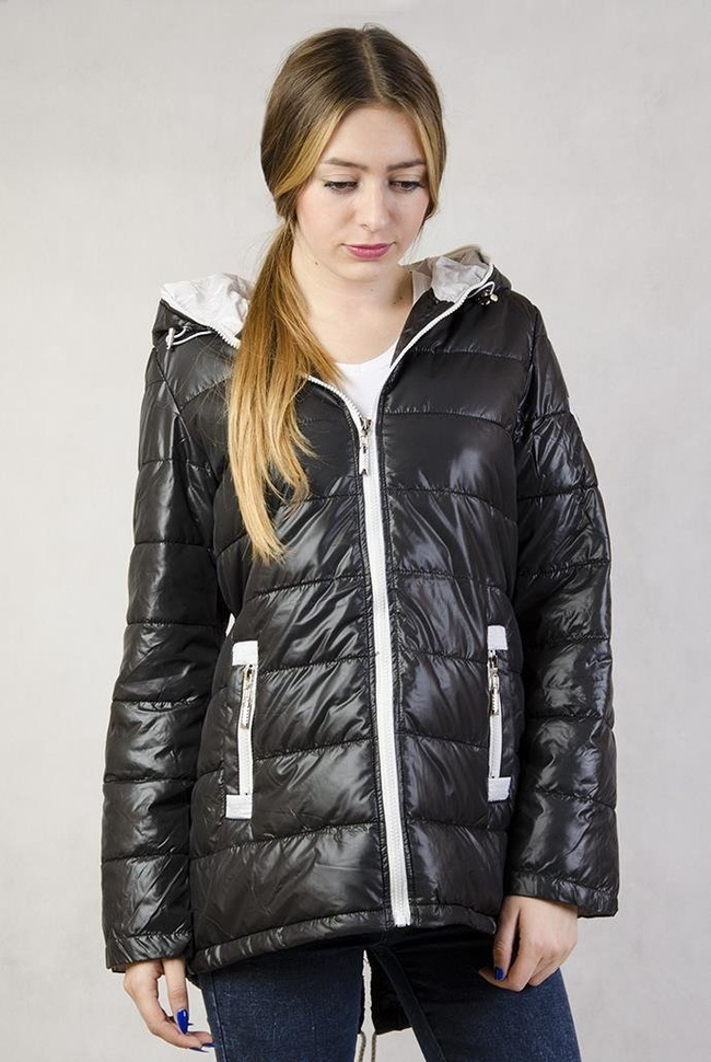Pikowana kurtka z szarym zamkiem, ściągana z tyłu, czarna