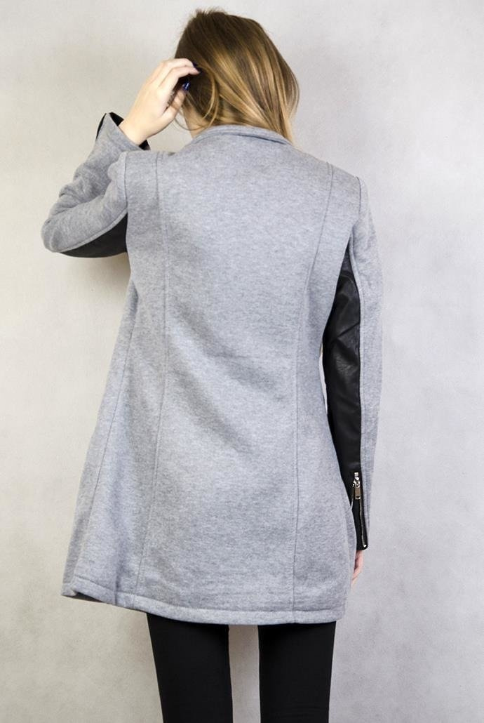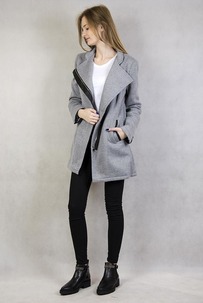 Jasnoszary płaszcz z czarnymi wstawkami