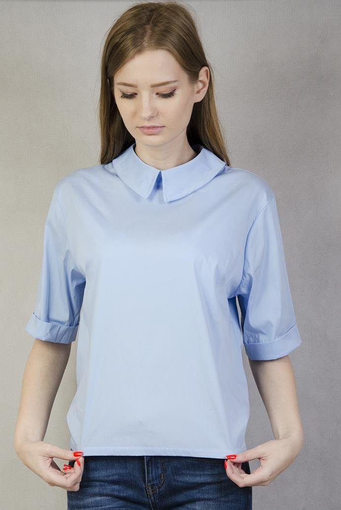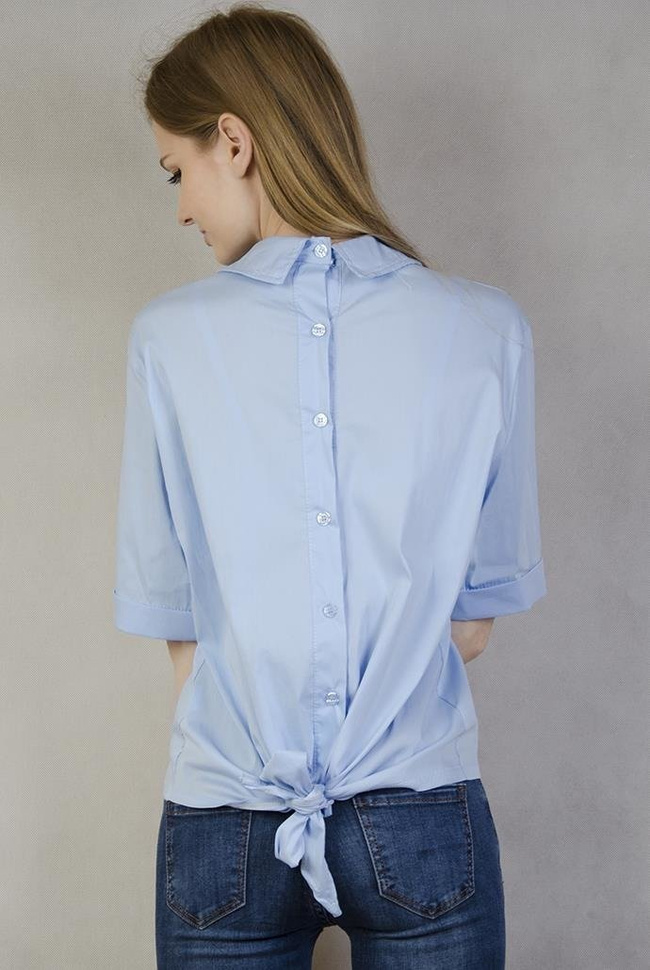 Niebieska koszula z wiązaniem na dole i guzikami z tyłu