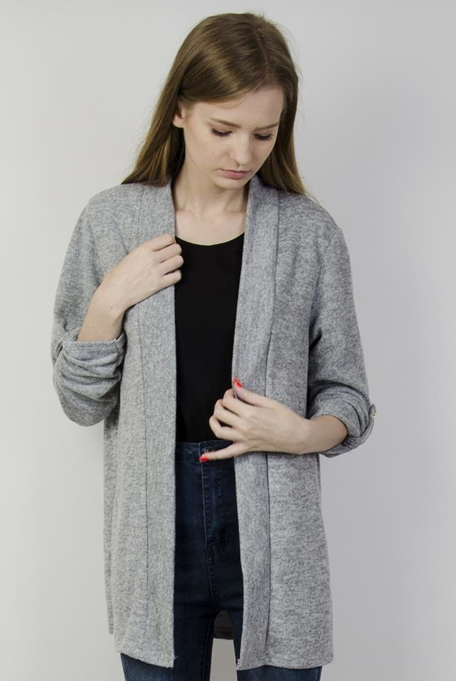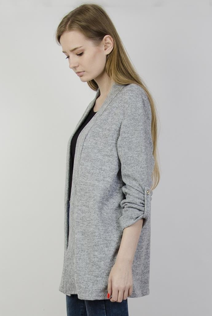 Jasnoszara narzuta z podwijanym rękawem na złoty guzik