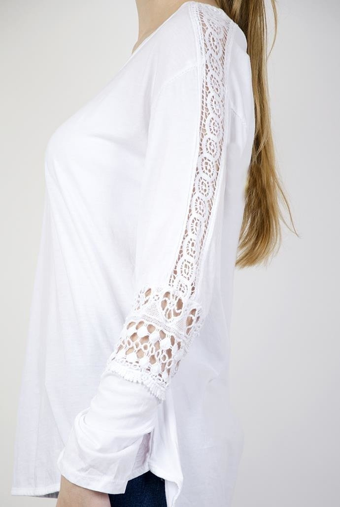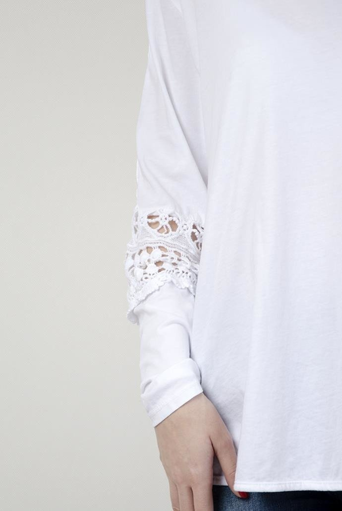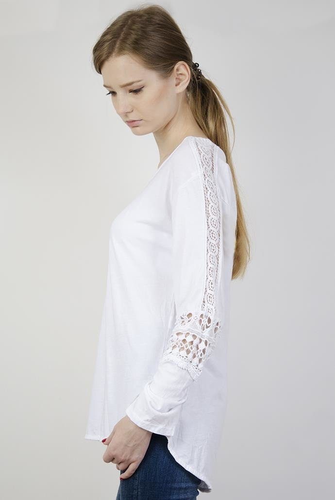 Biała bluzka z pięknymi zdobieniami na ramionach