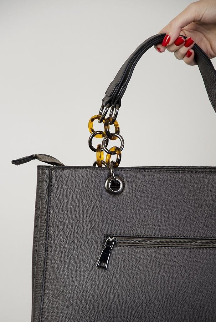 Szara duża torebka z zawieszką "M" mieszcząca A4,