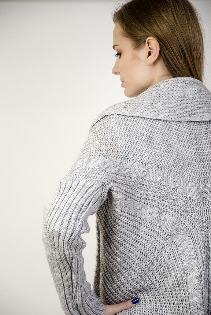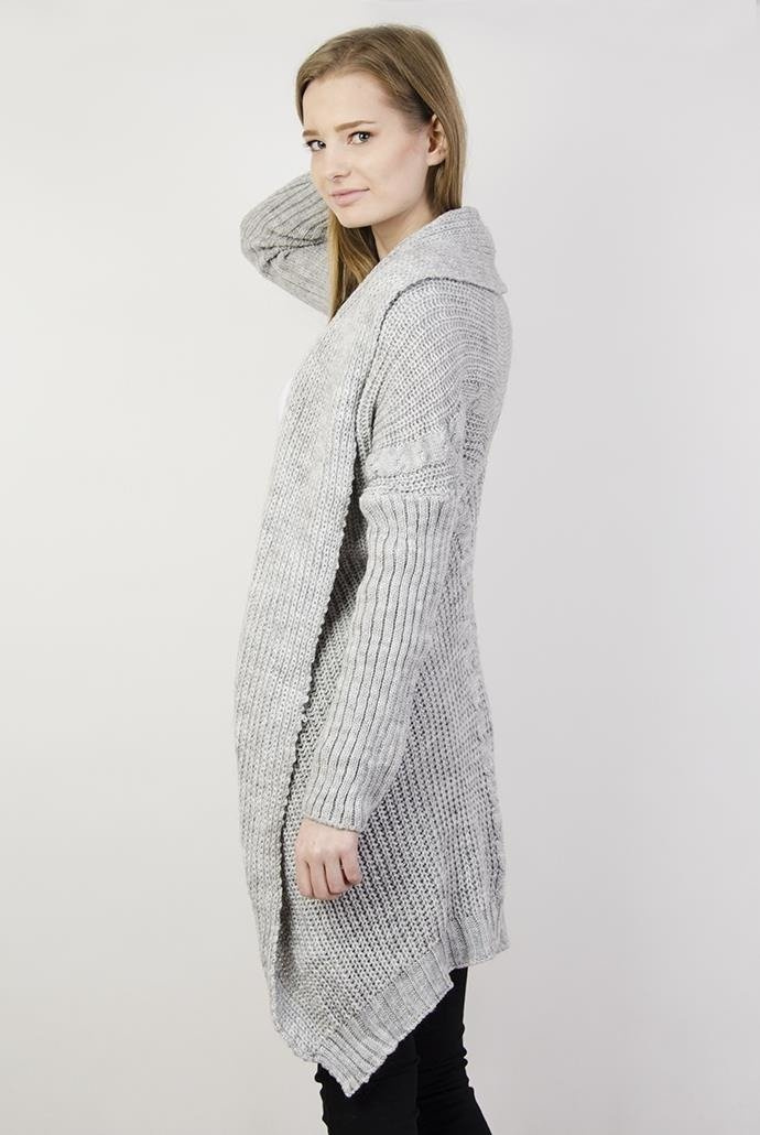 Jasnoszary sweter kardigan z wywijanym kołnierzem