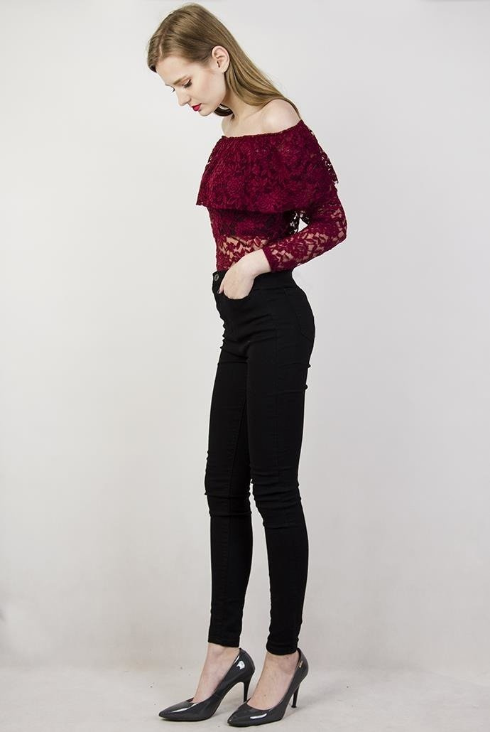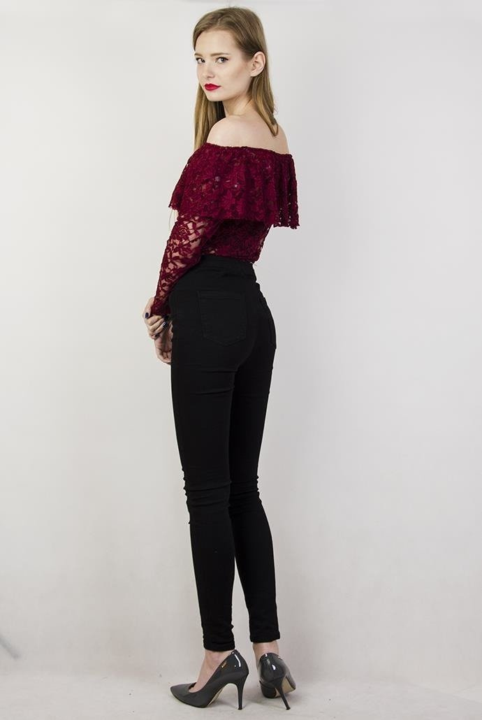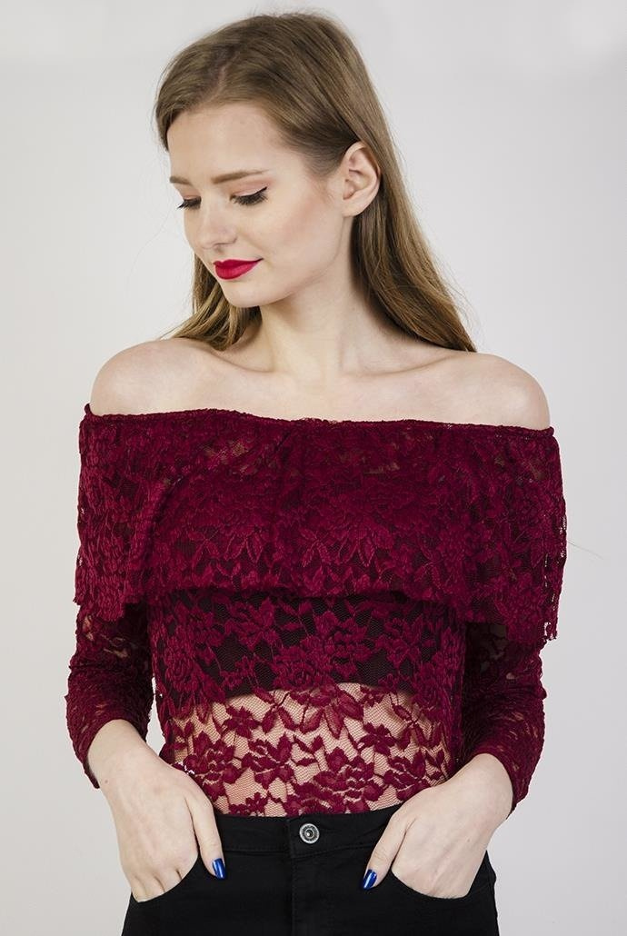 Koronkowe bordowe body z hiszpańskim dekoltem