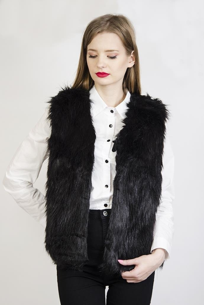 Czarna, włochata kamizelka