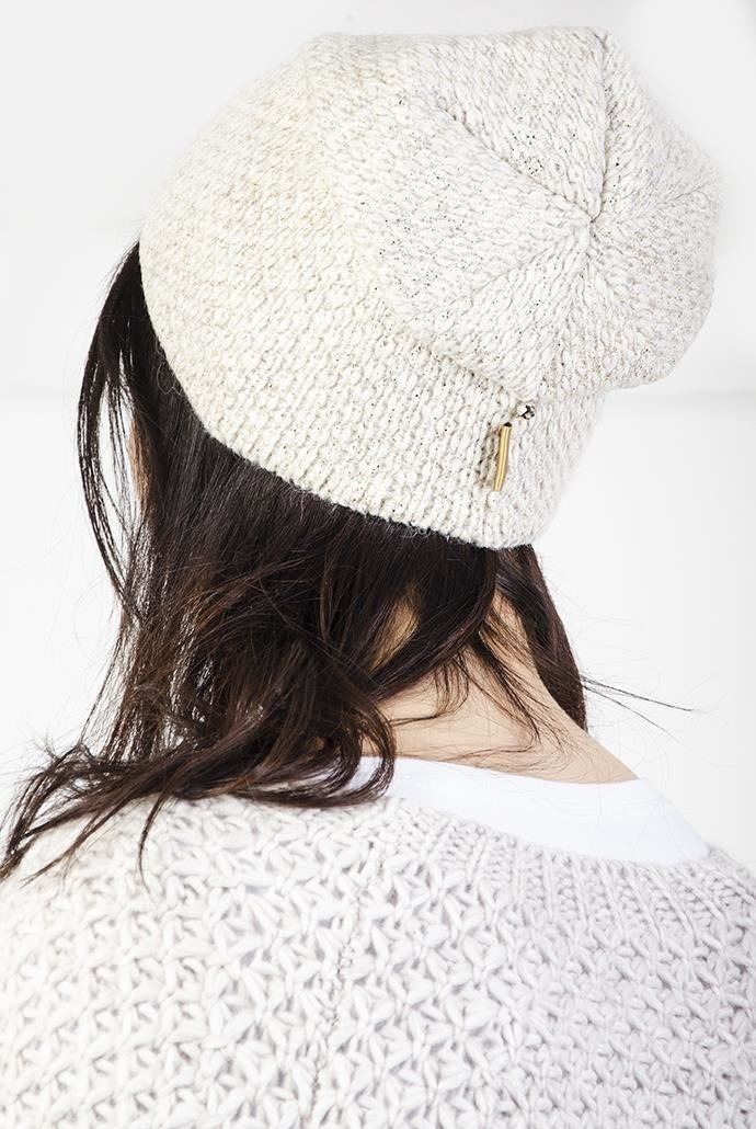 Beżowa czapka ze złotymi akcentami