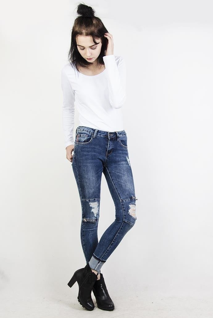 Spodnie jeansowe z zamkami na kolanach