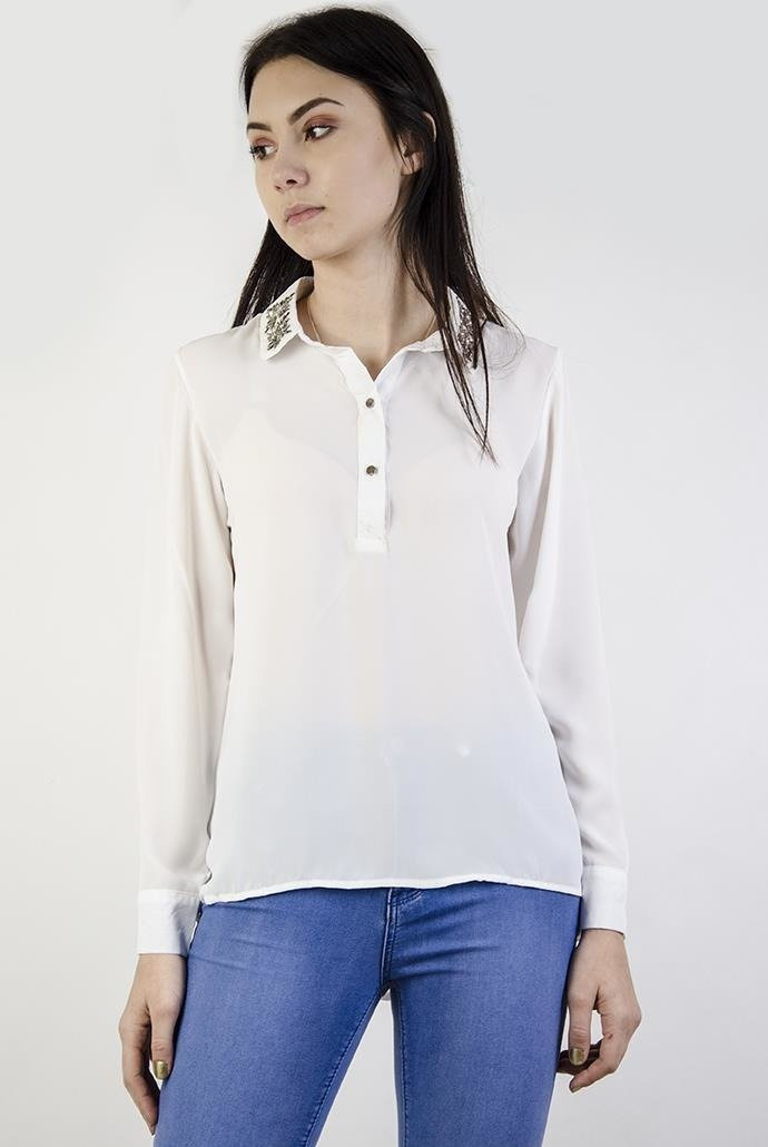 Biała koszula ze zdobionym kołnierzem