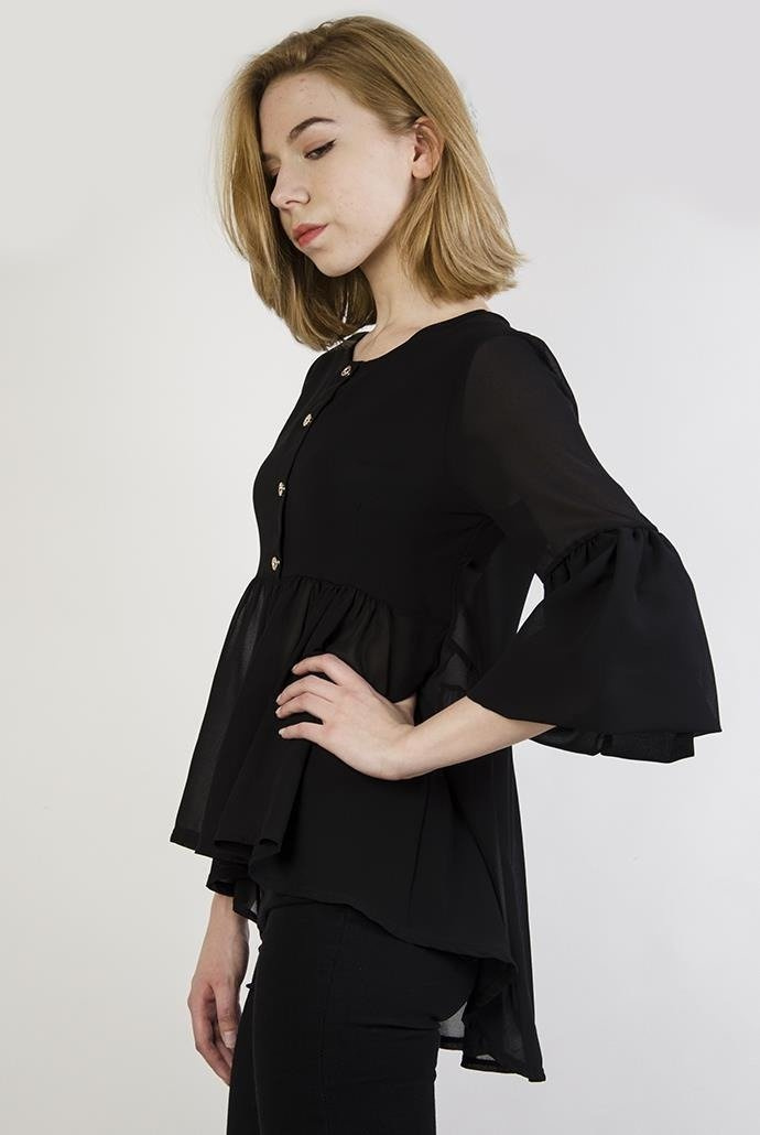Czarna bluzka z siateczkowym odcięciem pod biustem