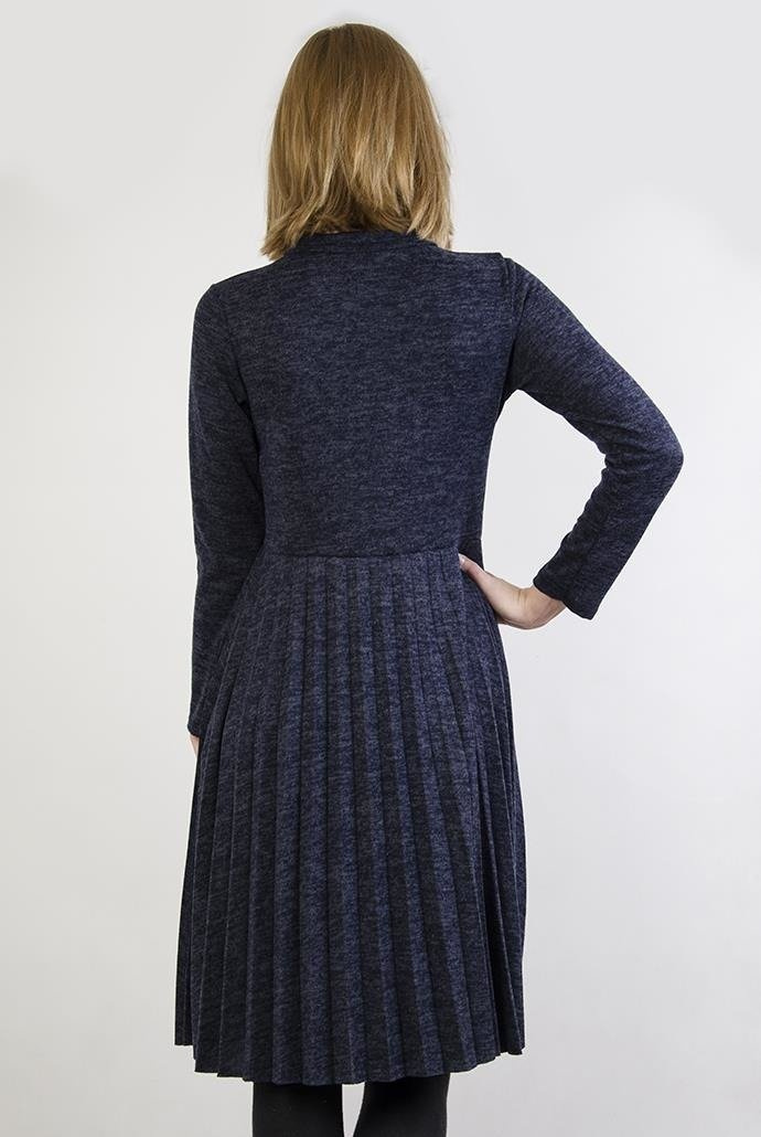 Granatowa sukienka z wiązaną kokardą przy szyi