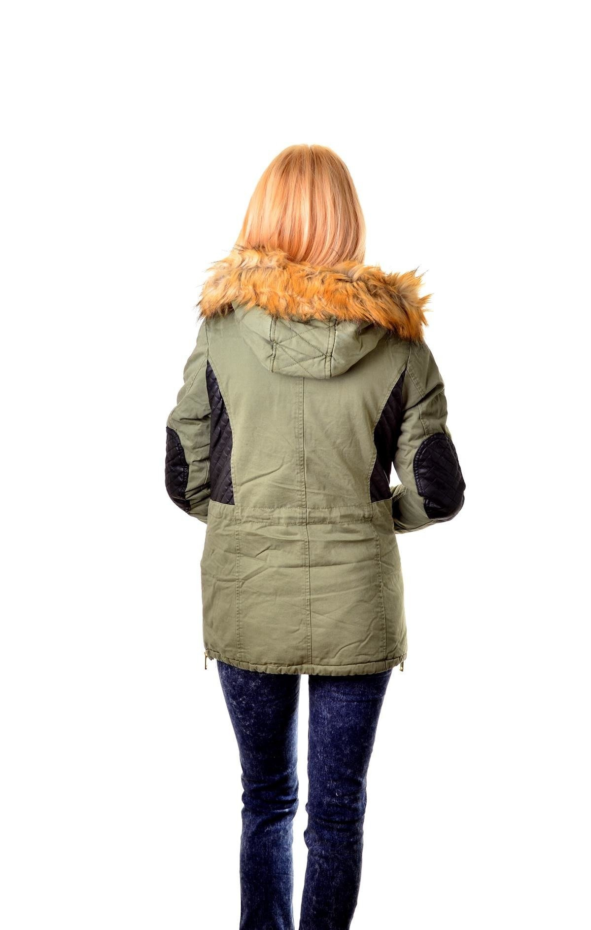 Dłuższa kurtka wiązana w talii, z kapturem wykończonym futerkiem oraz ciepłą podszewką. Kurtka posiada pikowane wykończenia ze skóry ekologicznej. Idealna na chłodniejsze dni.